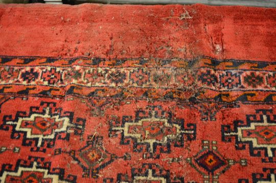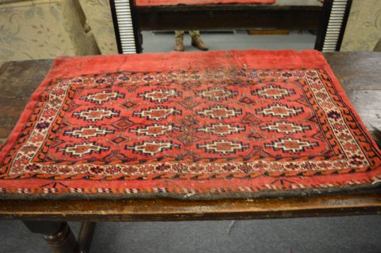 A Persian bokhara style camel bag (moth damage) 118cm x 78cm.