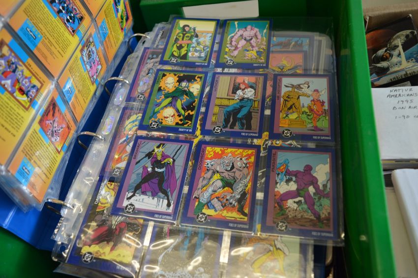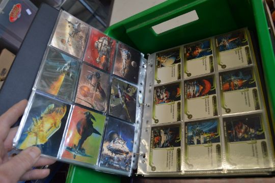 A box of four folders of collectors cards.
