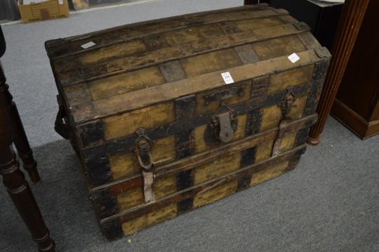 A metal bound dome topped trunk.