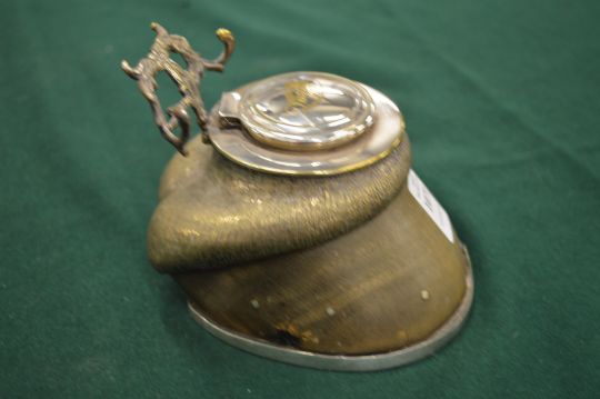 A horse hoof inkwell with plated mounts.