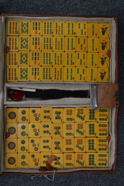 A leather cased mahjong set.