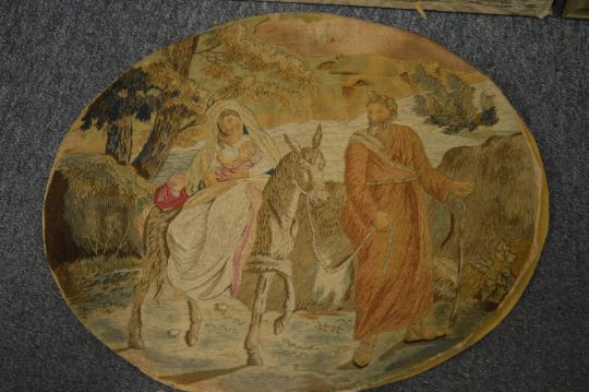 Two silk work pictures, unframed (faults).