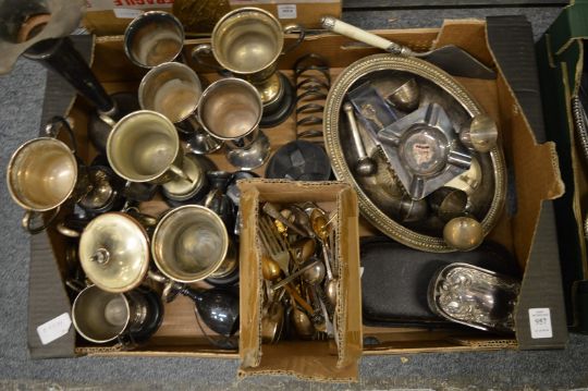 A collection of plated items to include trophy cups.