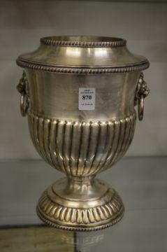 A good plated wine cooler with lion mask ring handles and removable liner.