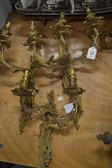 A pair of ormolu twin branch wall appliques and a similar wall applique.