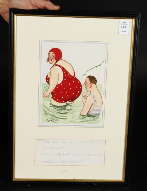 Donald McGill (1875-1962) British. 'Sea Bathing is Good for my Arthritis', 'Well You Ain't Got it Under the Water You Know', Watercolour and Bodycolour, Signed and Inscribed, 7.5" x 5.5".