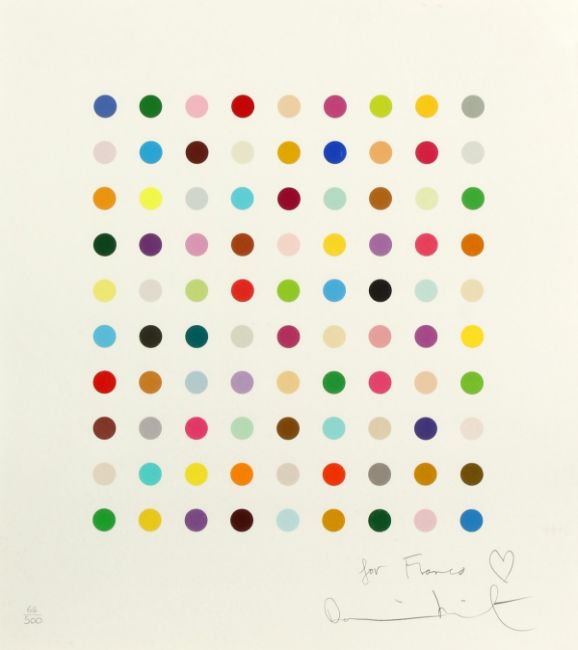 Damien Hirst (b.1965) British. Ninety Coloured Spots, Edition 64/500, Signed and Inscribed.