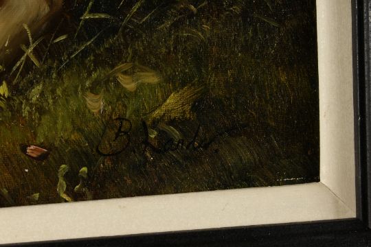 B. Lander (20th Century). Three Hunting Dogs in a Landscape, Signed, 20" x 24".
