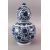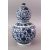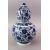 A 20TH CENTURY CHINESE MING STYLE BLUE & WHITE DOUBLE GOURD PORCELAIN VASE, the body decorated with formal scrolling rosette, the base with a six character Qianlong mark, (AF), 34.5cm high.