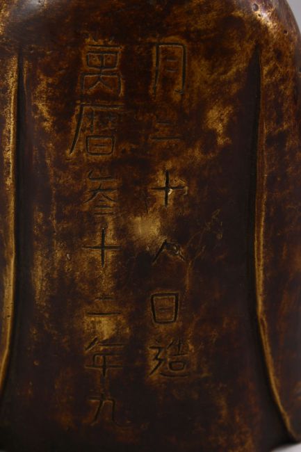 A CHINESE BRONZE FIGURE OF GUANYIN, in a seated position, 23cm high.