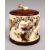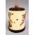 A GOOD JAPANESE MEIJI PERIOD CARVED IVORY & SHIBAYAMA TUSK POT & COVER, the body of the section inlaid with semi precious stone and shell to depict two wood pidgeons in native flora with another bird, the wooden cover carved with and ivory fungi finial. 18cm x 16cm