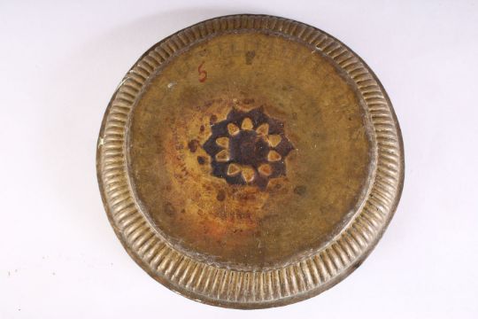 A 19TH CENTURY INDAIN BRASS CHARGER / DISH, with embossed decoration, 25cm
