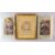 THREE PERSIAN MINIATURE PAINTINGS WITH CALLIGRAPHY, two unframed, one framed, the framed image of to seated figures in a landscape, 27cm x 21.5cm.