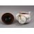 A JIAN WARE POTTERY BOWL & A CHINESE REPUBLIC STYLE FAMILLE ROSE PORCELAIN TEAPOT BIRDS, the bowl 9cm diameter, the teapot with calligraphy and a red seal mark, 8cm wide.