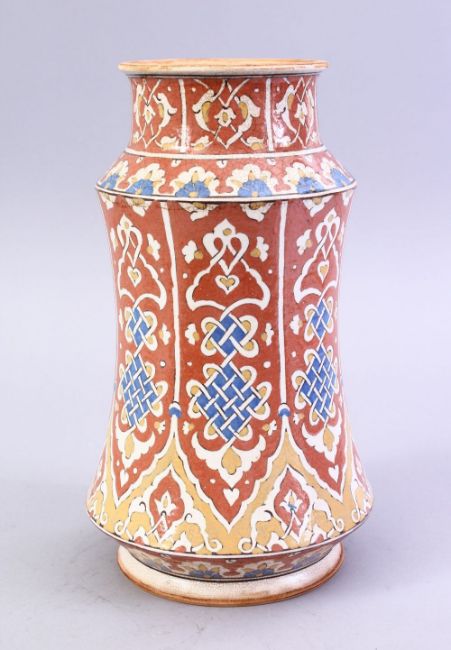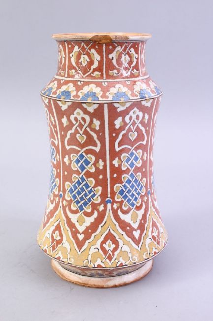 A GOOD SPANISH ISLAMIC POTTERY ALBERELLO, 26cm high.