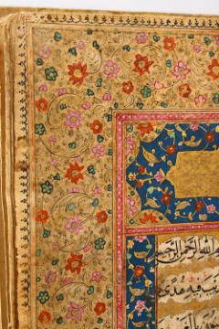 AN EARLY 18TH CENTURY INDO PERSIAN KASHMIRI QURAN, signed " muhamad muhdi and dated 1110, the binding finely painted lacquer work, the quran with many pages of painted decoration and script, 29cm x 19cm.