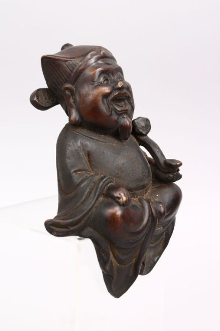 A CHINESE BRONZE CENSER LID OF BUDDHA, 18CM.