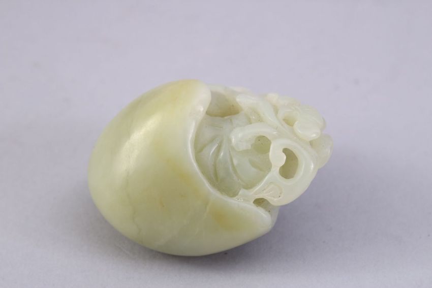 A GOOD CHINESE CARVED JADE FIGURE OF LINZHI, 5.3cm.