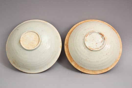 A GOOD PAIR OF EARLY CHINESE POTTERY BOWLS, 16cm.