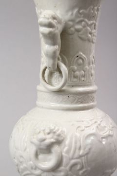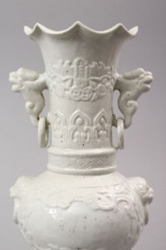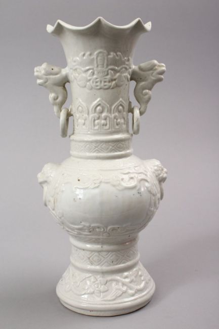 AN 18TH CENTURY STYLE CHINESE MONOCHROME PORCELAIN TWIN HANDLE VASE, the base with an impressed seal mark, 30cm