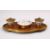 AN 18TH / 19TH CENTURY CHINESE IMARI PORCELAIN DISH AND CUPS - MOUNTED, the two cups and saucer dish mounted to a burr wood gilt mounted base, forming an inkwell or candlestick holder, 35cm long 19cm,