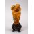 A GOOD QUALITY NATURAL COLOUR CHINESE CARVED SOAPSTONE FIGURE OF ROHAN, stood holding a staff over his shoulder, with a fitted hardwood stand, 10cm.