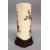 GOOD JAPANESE MEIJI PERIOD SHIBAYAMA & CARVED IVORY TUSK VASE, the vase inlaid with semi precious shells to depict a peacock in a native tree, with a carved base and silver lower collar, 22cm high x 13 cm ( tusk alone ).