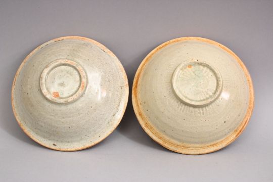 A GOOD PAIR OF EARLY CHINESE POTTERY BOWLS, 15cm diameter.