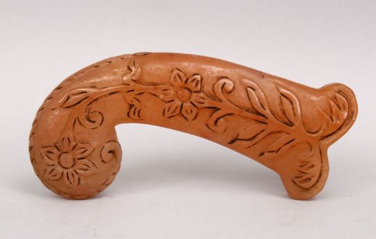 A GOOD INDIAN MUGHAL / ISLAMIC CARVED JADE / QUARTZ DAGGER HANDLE, with carved floral motifs, 13cm.