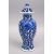 A GOOD 19TH CENTURY CHINESE BLUE & WHITE PORCELAIN BALUSTER VASE & COVER, the body of the vase with blue ground and decoration of scrolling lotus, the base with double blue rings, 29cm high.