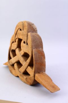AN EARLY POSSIBLY 16TH CENTURY ISLAMIC CARVED WOODEN WRITING SYMBOL, 43cm wide x 29cm high.
