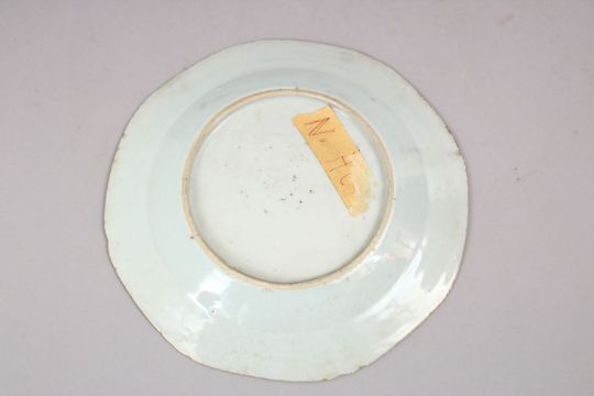 A GOOD CHINESE 18TH CENTURY MANDARIN FAMILLE ROSE PORCELAIN PLATE, depicting figures in a landscape, 23cm.