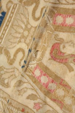 A GOOD 19TH/20TH CENTURY EGYPTIAN EMBROIDERY, with a row of three pedestal urns and numerous scarab beetles, in a hieroglyphic border, later linen backed.