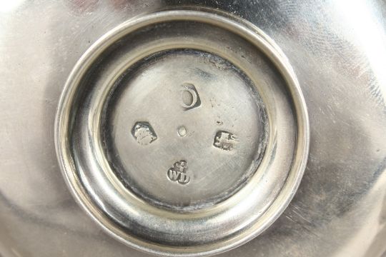 A GEORGE II SILVER THREE PIECE COMMUNION SET, bowl, paten and jug.