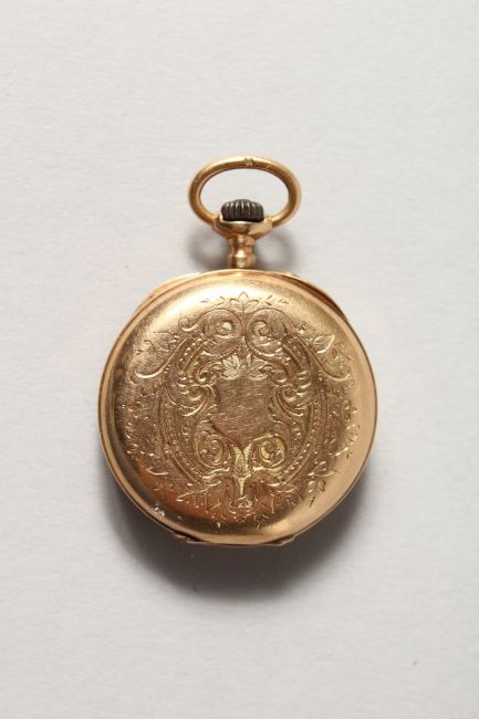 a ladies' 18ct gold engraved watch.