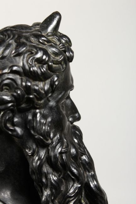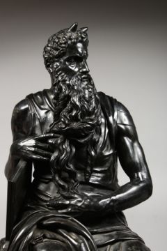 AFTER MICHELANGELO - AN IMPRESSIVE LARGE BRONZE OF MOSES seated on rocks, a tablet under his arm. 30ins high x 25ins wide.