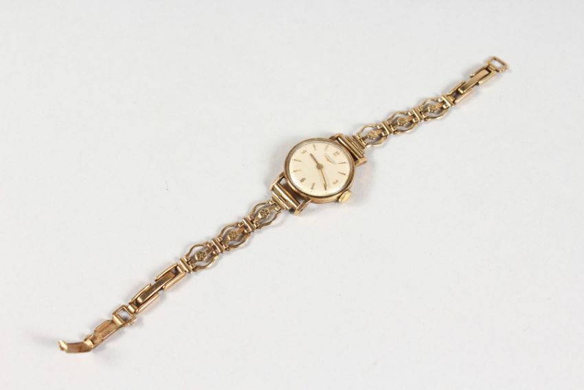 A LADIES' 9CT GOLD LONGINES WRISTWATCH with 9ct gold bracelet, in a box.