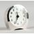 A SMALL ASPREY & GARRARD CHROME CIRCULAR TRAVELLING CLOCK, Swiss made, shaped as a horseshoe.