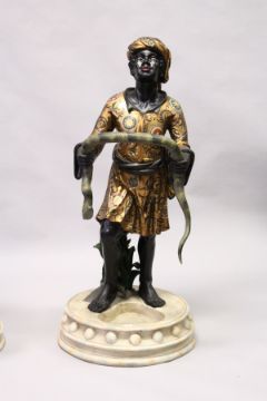 A PAIR OF COLOURFUL BLACKAMOOR STICK STANDS.