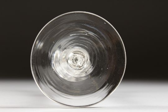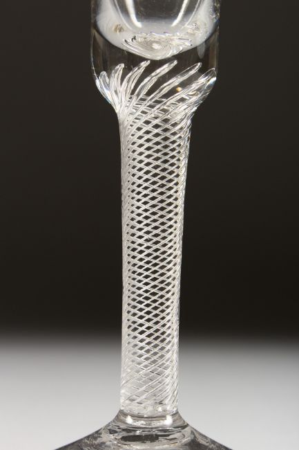 A GEORGIAN WINE GLASS with inverted bell shaped bowl and air twist stem.