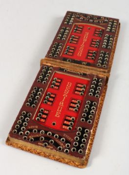 A MOROCCAN LEATHER FOLDING BEZIQUE MARKER.