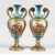 A GOOD PAIR OF 19TH CENTURY SEVRES PORCELAIN AND ORMOLU TWO HANDLED VASES, pale blue ground painted with reverse oval panels of flowers and classical figures, held within an ormolu frame.