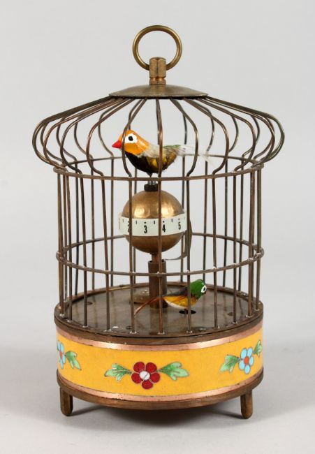 A SMALL BIRDCAGE AUTOMATON CLOCK.