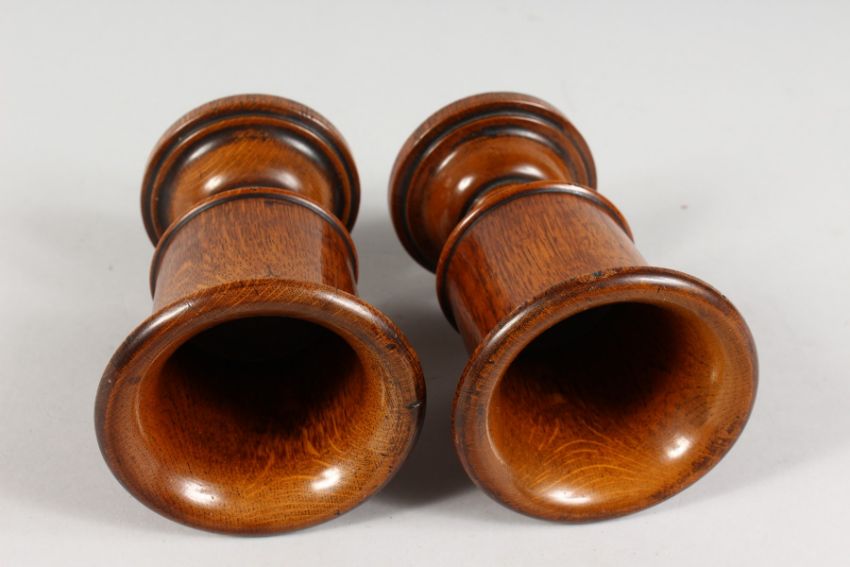 A PAIR OF TURNED TREEN URN SHAPED GOBLETS.