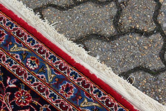 A GOOD LARGE KASHAN CARPET, 20TH CENTURY, claret ground with allover floral decoration.