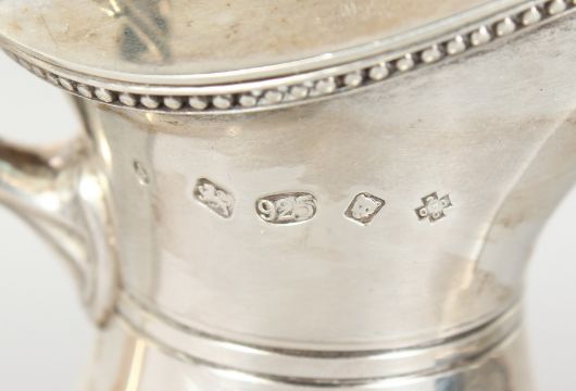 A CONTINENTAL SILVER MOUNTED CUT GLASS CLARET JUG.