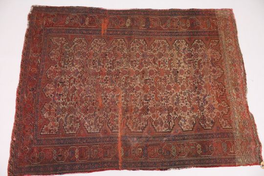 A PERSIAN RUG, early 20th Century, beige ground woven with stylized animals and birds, within a rust ground border.
