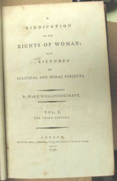WOLLSTONECRAFT (Mary) Vindication of the Rights of Woman, 8vo, vol. 1 only, half calf (worn, cvr. off; small hole in t.p.), 3rd Edn., L., 1796.