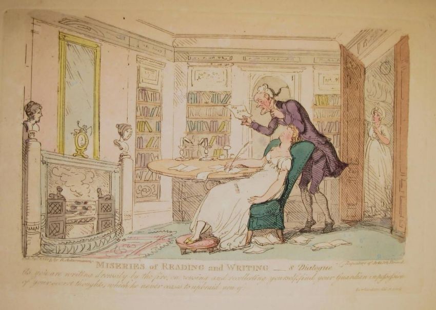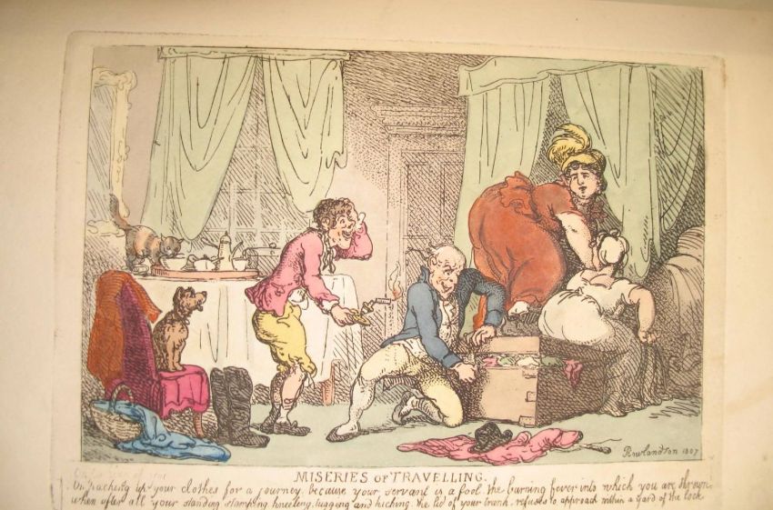 ROWLANDSON (THOMAS) Miseries of Human Life, 4to, 50 hand-col'd plates (J. Whatman watermarks for 1804, 1806), contemp. half calf (upr. cvr. detached) green printed label to upr. cvr., L., Ackermann, 1808. First Edition.