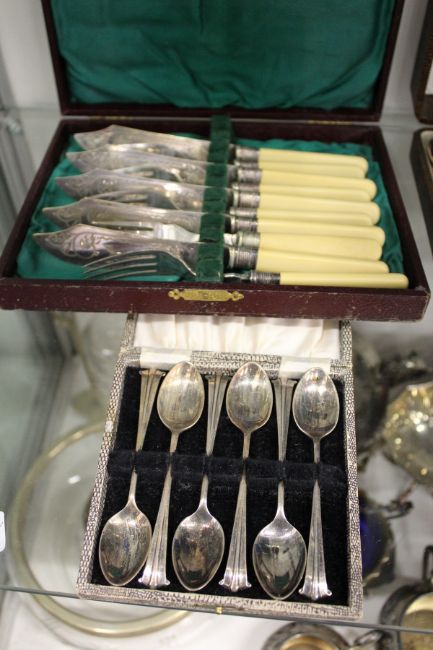 Five cased sets of flatware.